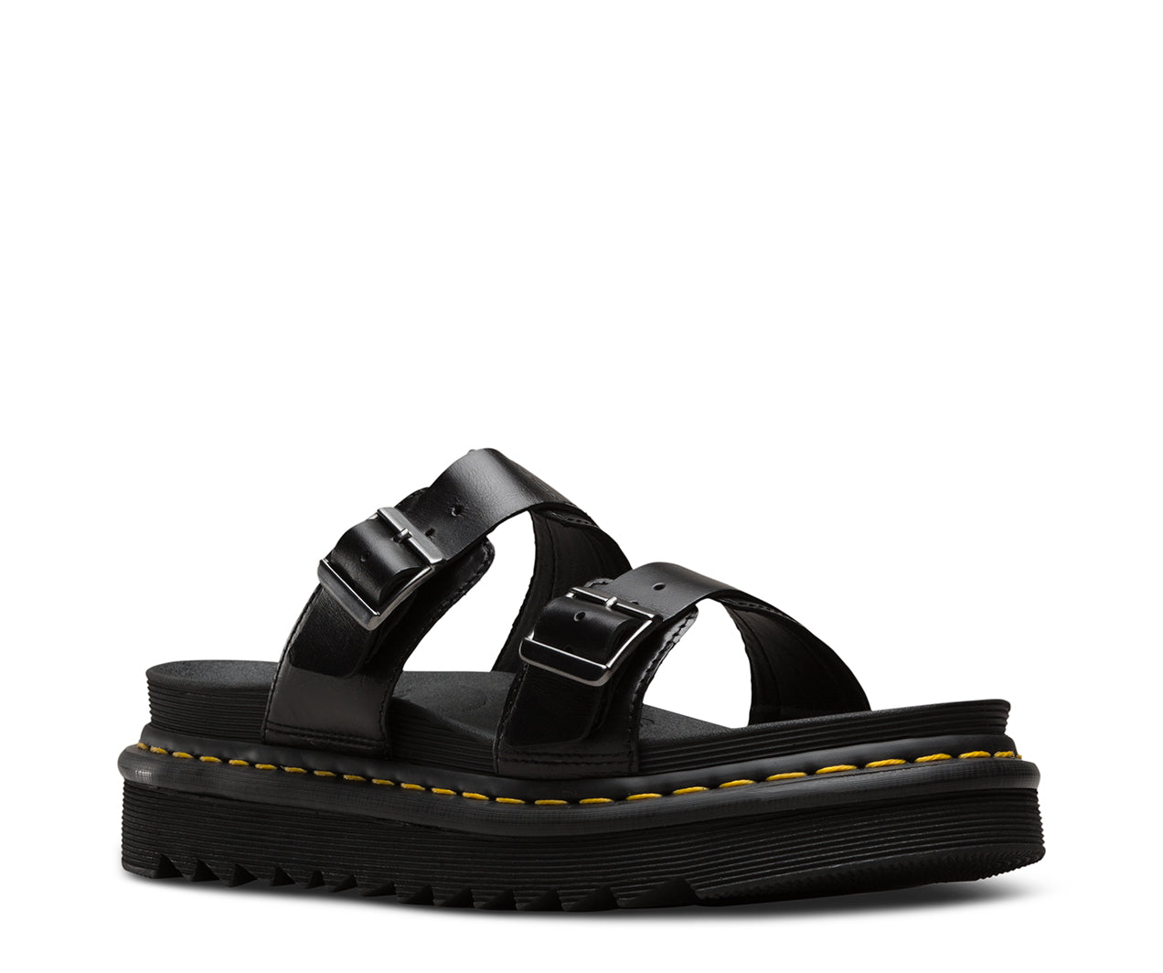 Dr Martens Myles Slide is a slip-on sturdy, lightweight ripple sole sandal, built for all-day comfort, with two thick adjustable buckle straps in soft but hardwearing leather, has Dr Martens Goodyear-welted DNA, , so it's super-durable. LOVE DR MARTENS LOVE THEIR SANDALS. Perfect for a bit of edgy style with the extra height as a bonus.